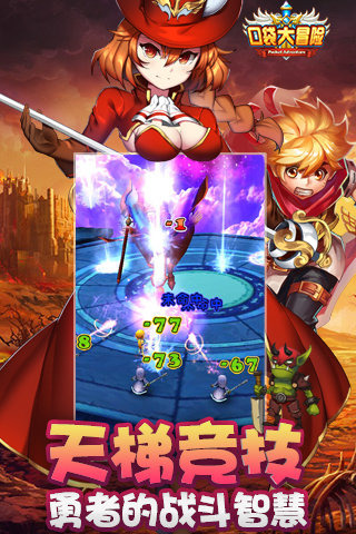 2、《口袋大冒险》拥有多达上百位各具特色的英雄伙伴;每位伙伴都拥有精美的造型,绚丽的技能,丰富的剧情,独特的个性;“三国争霸、西游伏魔、五军之战”这些传奇故事中的英雄人物都将悉数登场。团队包括援助在内,最多由4个人组成。收集不同英雄来组建属于你的英雄战队吧!