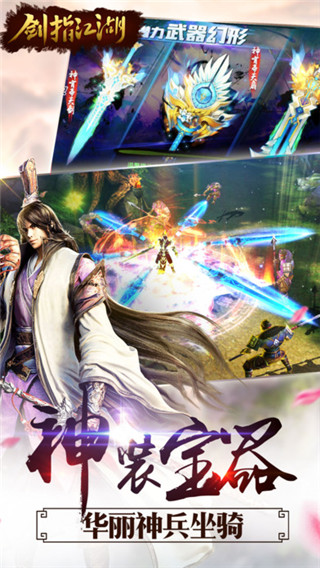 经典武侠手游《剑指江湖》,以动荡年代为背景,讲述一场乱世江湖的恩怨情仇。金銮城下聚集天下英豪,阵营联合,对抗敌阵,武道争霸,决出天下霸主!青春武侠风暴席卷江湖,结拜好友快乐游戏,盛世情缘为红颜!战骑、灵宠、法器、神兵、神羽等丰富的2265武林高手成长途径,炫酷时装彰显尊贵身份,赋予每个侠客独特的个人风格。青春武侠,热血江湖。