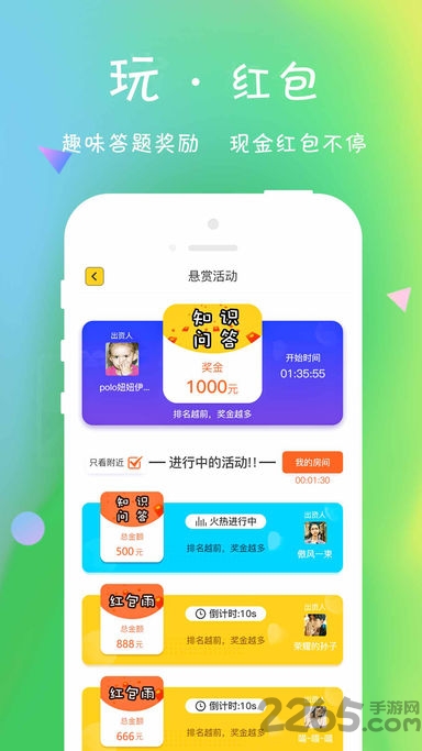 ▲红包游戏:金主/玩家角色任选,红包雨游戏随时开战,比拼手速,参与知识答题竞赛活动,接受挑战,赢取现