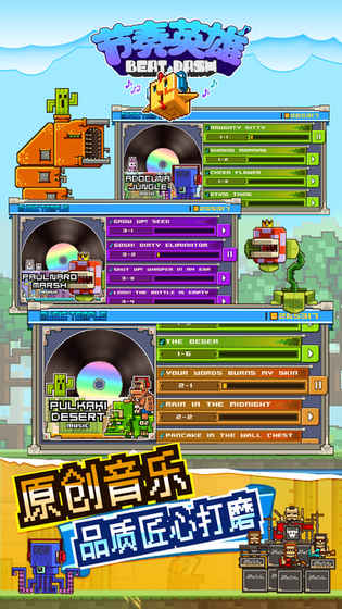 游戏非常的休闲,复古像素风打造的跑酷类休闲游戏,在多个场景中开启一段音乐跑酷之旅,由游戏英雄互娱官方发行,一经推出,收到广大玩家的热情追捧,挑战极限就是挑战不可能,多种节奏游戏等你来体验。