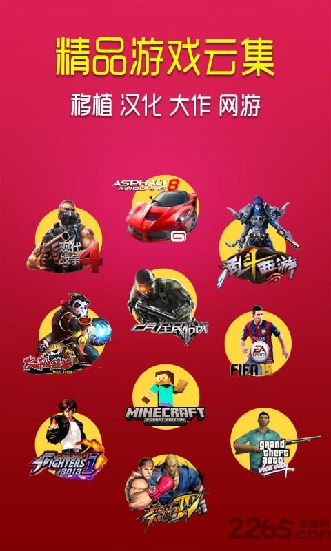 聚合了国内外最新,最酷,最精彩的游戏大作,所有游戏即下即玩,完全无需配置。FIFA, GTA, 拳皇,合金弹头等精彩力作,你绝对不能错过!