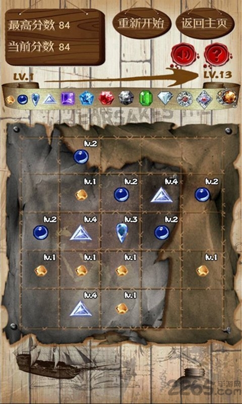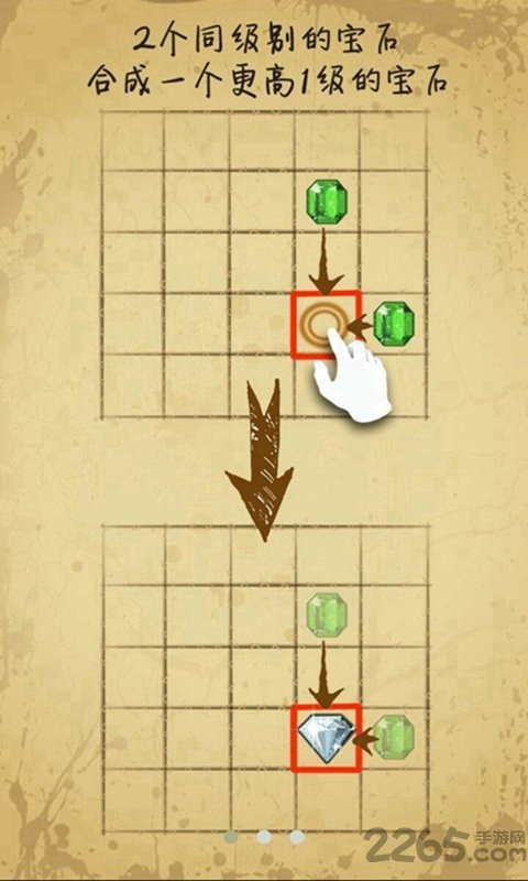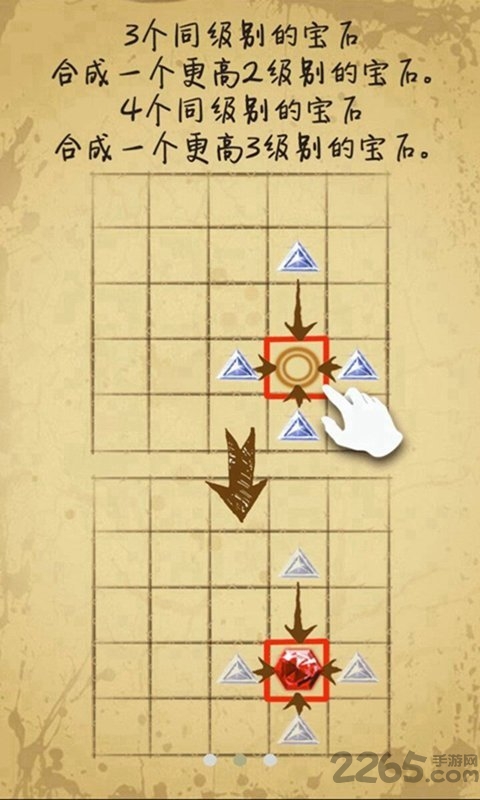 2.宝石一共13个级别,越高越璀璨夺目,当每个格子都铺满宝石,则游戏结束。