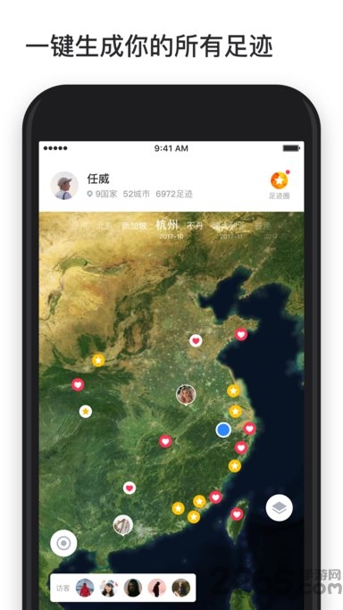 51足迹app是出行足迹记录应用,可以帮助你记录你所以的出行足迹并且生成一个地图,让你能够方便的知道自己去了那些地方,还可以将足迹地图分享到朋友圈、好友,喜欢的用户赶快下载吧。