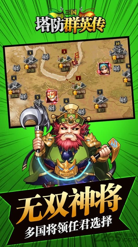 三国塔防群英传手游是一款用卡通版的三国人物为主角的策略塔防游戏,经典的三国名将在三国塔防群英传中都会化身为一座防御塔以此来守护貂蝉,游戏上手速度快并且非常有剧情性,喜欢就快来2265安卓网下载吧!