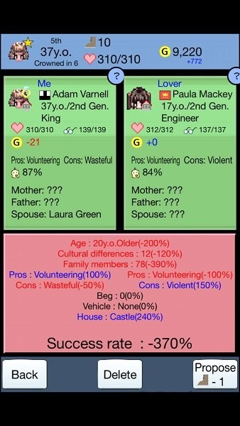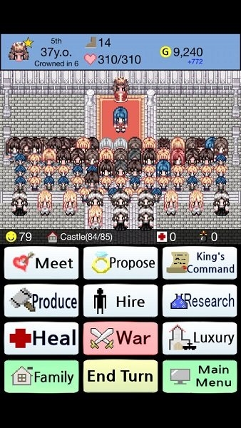 游戏中玩家作为一个失去领土王国的后代接受到了神的指点开始自己建造一个王国,你需要结婚生子增大王国的人口基数,在建设时可以根据自己的喜好来。以发育后代为主题的日系像素养成游戏,玩家主要的任务就是去和其他国家的优秀女性交往,生育强壮智慧的后代使自己的国家更加的繁荣昌盛。