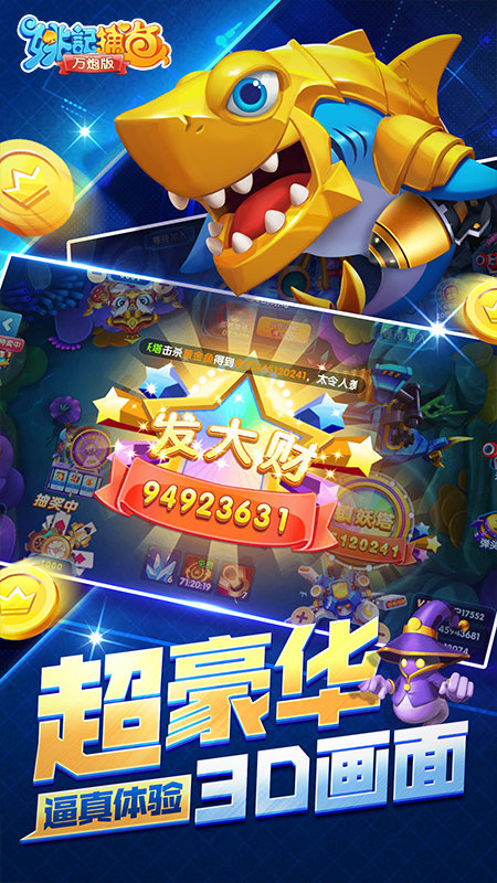 精致绝伦的3D画面和震撼特效,打造出栩栩如生的海底世界,在轻松愉悦的游戏中享受超凡的捕鱼感受!