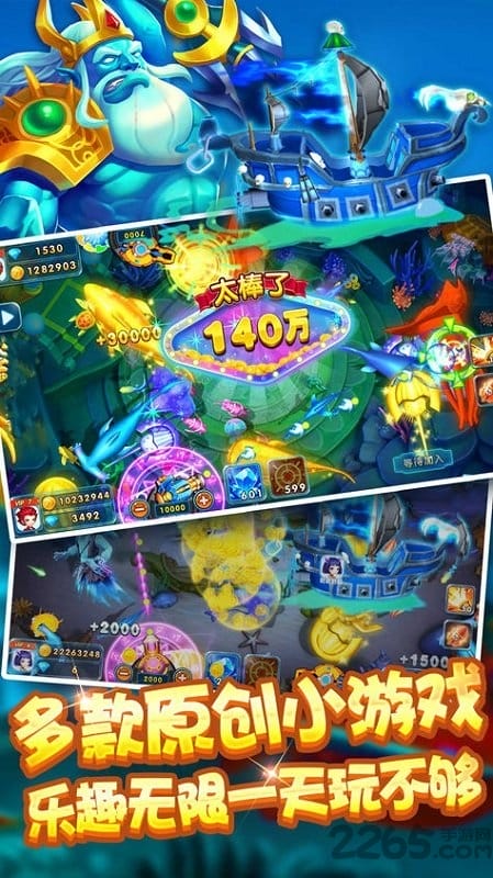 1、专属渔房,百变鱼类,千倍炮台,万倍BOSS!