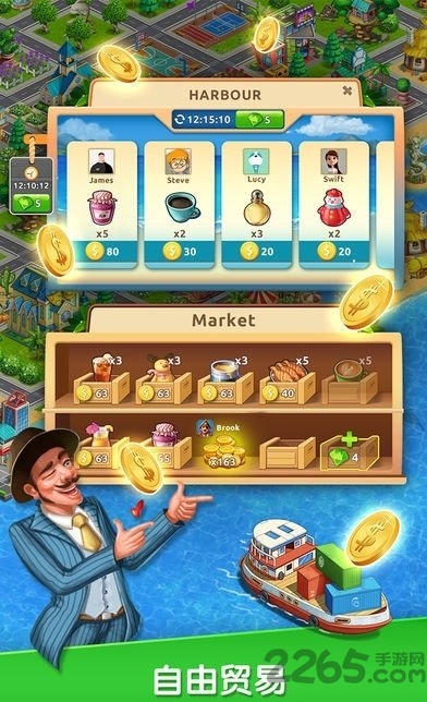 在繁华的市场与全球玩家进行自由买卖,为您的海岛创造更高价值。