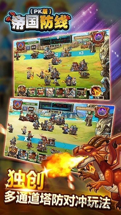 帝国防线pk版iPhone手机版,全球独创多通道卡牌塔防对冲游戏强力来袭!千军万马,运筹帷幄,尽在弹指一挥间.帝国的号角已然响起,勇敢的指挥官们,请运用你们的智慧,带领帝国军团踏上燃烧的远征之路吧!