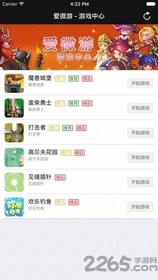 爱微游苹果版是一款非常受欢迎的游戏中心,在这里,无需下载安装,即可上线畅玩,邀请好友还能获得相关礼包哟,各大游戏直播以及破解游戏应有就那样,有需要的玩家欢迎来2265安卓网下载吧!