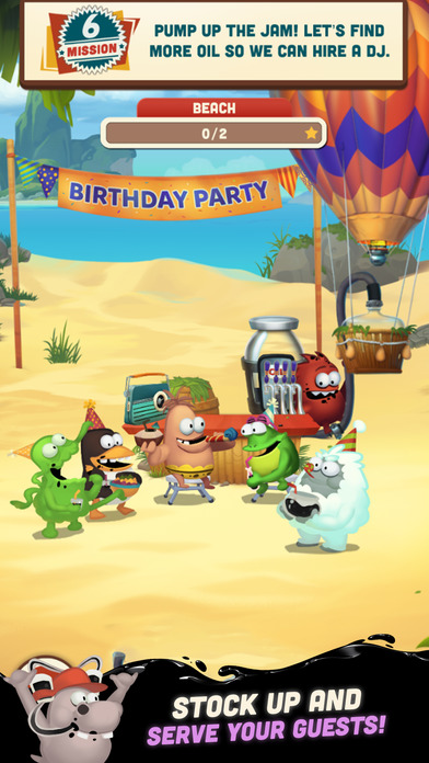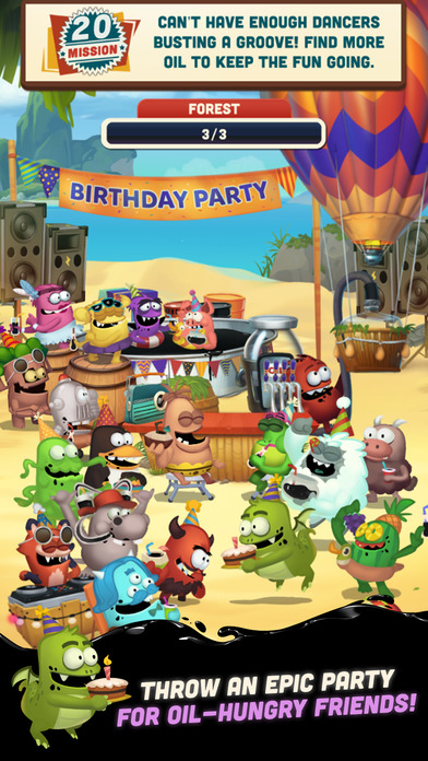 《采油小怪:生日派对》游戏主角小怪Red在这一次的新作中要举办一次生日Party,无奈石油短缺吸引不了朋友们前来捧场,为此Red必须出门开采更多的石油来招待它的朋友们。