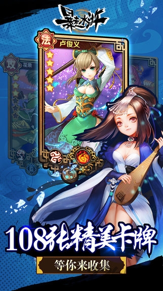 暴走水浒苹果版本是一款以经典小说水浒为背景的卡牌对战rpg游戏,近100张英雄人物的卡牌供玩家收集,各种卡牌之间不同的排列组合会形成不同的战斗威力,喜欢就来2265安卓网下载吧!