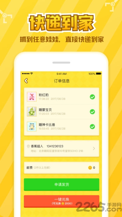 只要你抓到两件或以上的娃娃,我们就会为你包邮寄到指定地址,当然,一件也是会发货的哦!