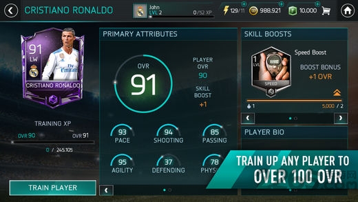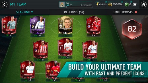 在超过550组球队中,任意选择11名球员(包括以往以及现役球星),打造最具竞争力的阵容,并将他们训练至超过100总评。为您的名单加入更多不同的球员、随时管理您的阵容,并在每场比赛开始前,迅速调整战术。 做出正确的决定,见证您的俱乐部成为Ultimate Team;