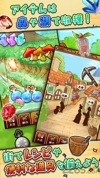 在森林与湖畔收集素材,按照配方调配出商品杂货;