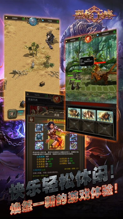 《烈焰王座》是一款单机挂机策略RPG游戏。每天不需要投入很大精力,即可获得海量资源。待你获得足够资源,带领你的英雄横扫战场吧。