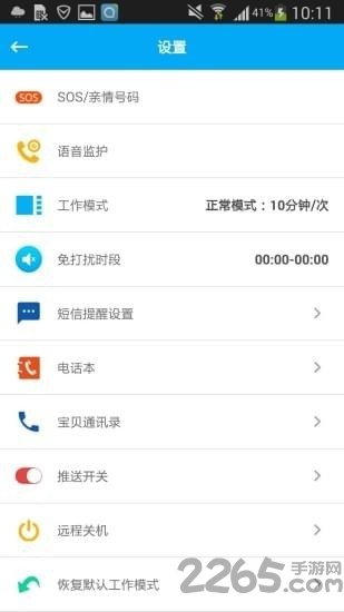 设置: APP 可以设置 SOS/亲情号码,设备工作模式,主意监护,免打扰模式等