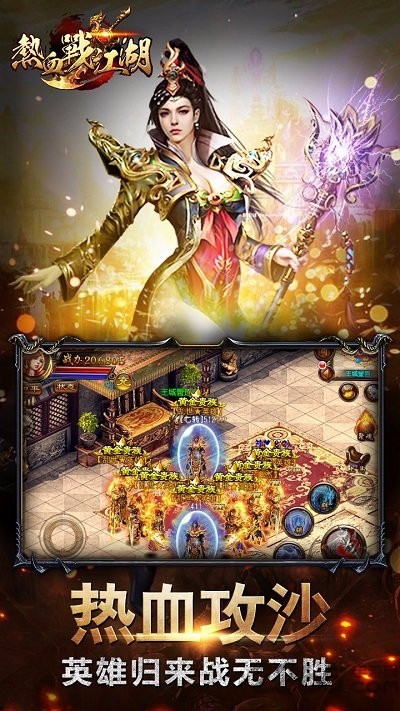 传承经典,续写传奇!热血pk手游热血战江湖ios火爆来袭,回归1.76经典版本玩法,复古设置带给你最初的感动,延续战、法、道"铁三角"的职业设定,还原野外自由PK爆装,全开放式交易、BOSS激战、行会争霸千人同屏、热血攻沙誓夺城主,数十张经典地图,上百种经典怪物和BOSS,上千种装备道具,万人攻城之战再现热血青春岁月.号令天下,沙城决战,尽在热血战江湖.