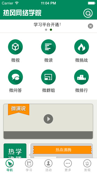 热风网络学院苹果客户端可以帮助企业学员在崭新的学习时代享受快捷、自主、分享的智慧学习.我们衷心期待热风网络学院让学习者的学习体验更加简单和愉悦,鼓励学习者不断创作并分享知识,建立起生机勃勃的互动学习生态圈.