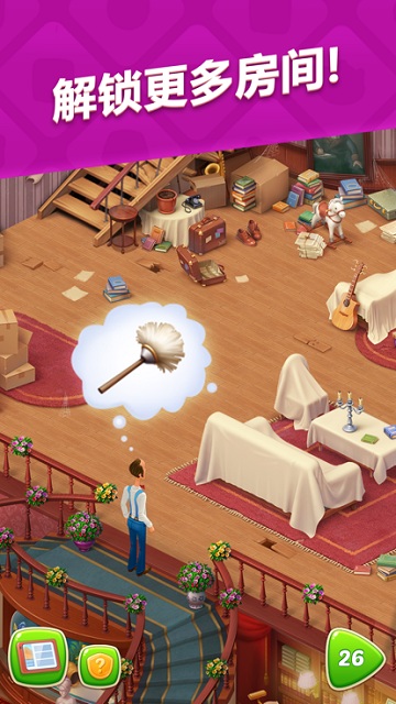 游戏的开始就是决定回到他童年的家,也就是属于他的去重温一下当年的美好。那么,这次的情怀之旅又将发生怎样的有趣故事呢?下面就请大伙跟随着笔者的步伐一起去体验一下吧。经过一路的颠簸,老管家奥斯汀回到了他记忆中最美好的温馨港湾。只不过由于年久失修,加上长期没有人居住的原因,家里面除了满满的都是灰尘之外模拟经营家园的手机游戏,游戏中加入了角色之间的互动,使得游戏更加具有耐玩性,同时游戏画质精美细腻,风格卡萌,对于画面党,看到的第一眼就会爱上!各位小伙伴们,还记得曾经由游戏厂商Playrix推出中的那个管家吗?就是咱们的奥斯汀这位仁兄。本周,他突然怀念起童年的生活,并且在“情怀”的加持下更加的好玩。