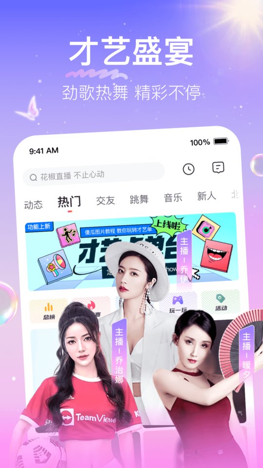 花椒直播ipad平板版新手福利全面上线!限时豪礼为你独享,只为一起来疯玩的你!简单几步,即可领取星币红包,当直播间真土豪,各大风格直播任你选,陪你疯玩,畅快体验王者感受。
