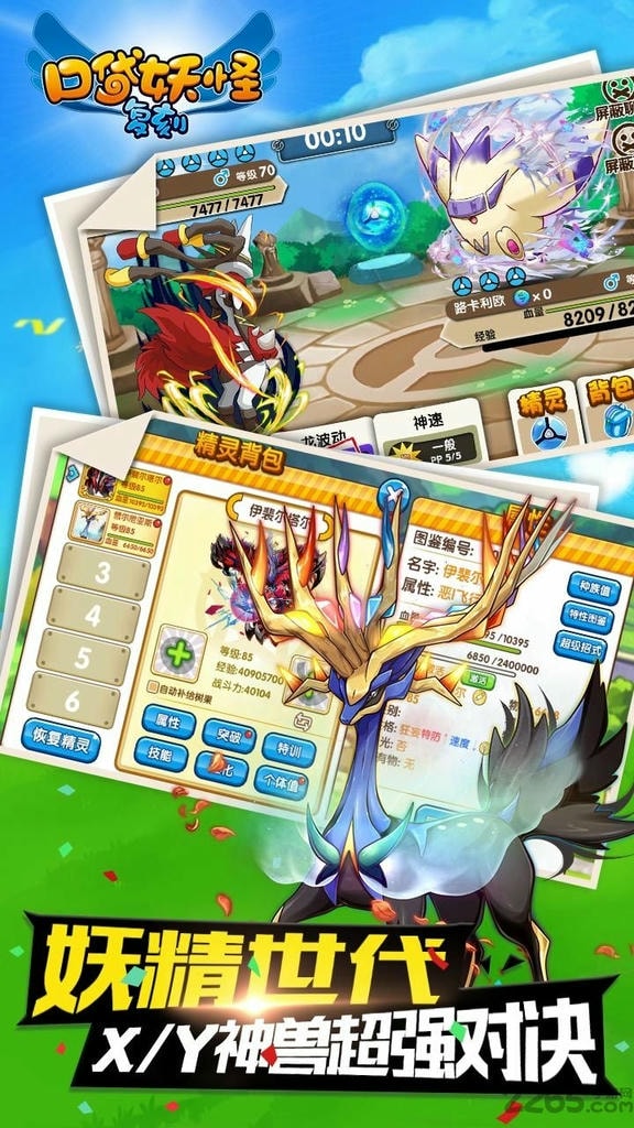 2、精灵升级学会新技能,高还原度手动对战系统,野外探险捕捉精灵;