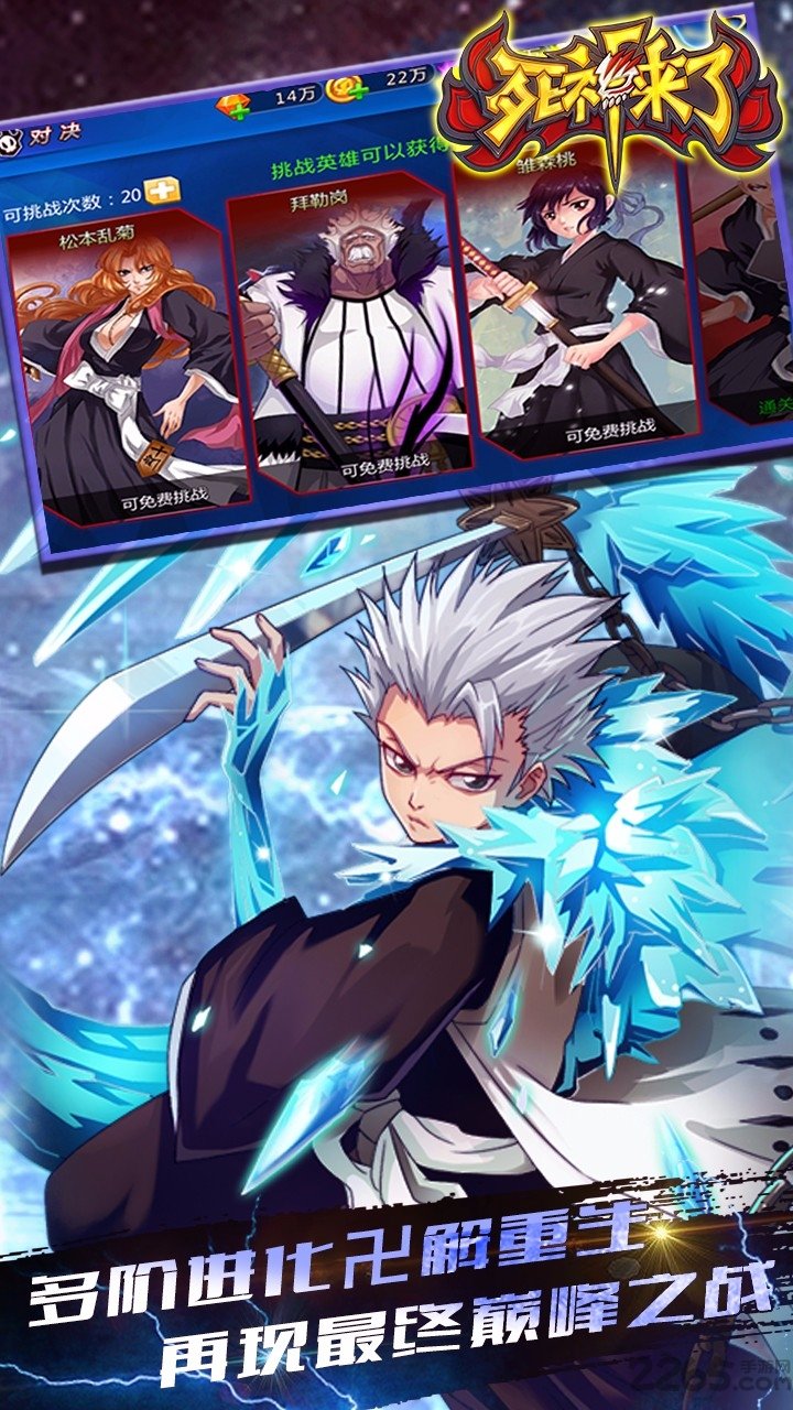1、《死神来了》高度还原动漫剧情,让玩家亲眼见证黑崎一护的成长之路。栩栩如生的3D人物加上炫酷华丽的特效将《死神》完美重现,上百个角色任你挑选,组建自己的死神军团。