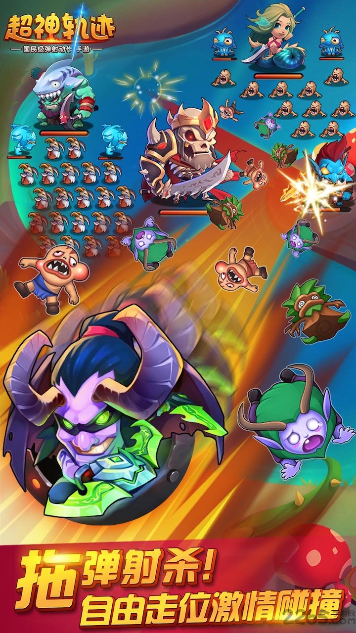 《超神轨迹》引入最新潮的弹射对战玩法,超爽的撞击体验,带你进入一个真实的托弹射杀的战场,告别了自动挂机游戏的无聊。史诗级“魔兽”——肉山大魔王等待您来征服!全新首创大秘境随机关卡,让您百玩不腻。玩法迥异的各色组队解密关卡,让您与小伙伴一起发挥智慧,各显神通!