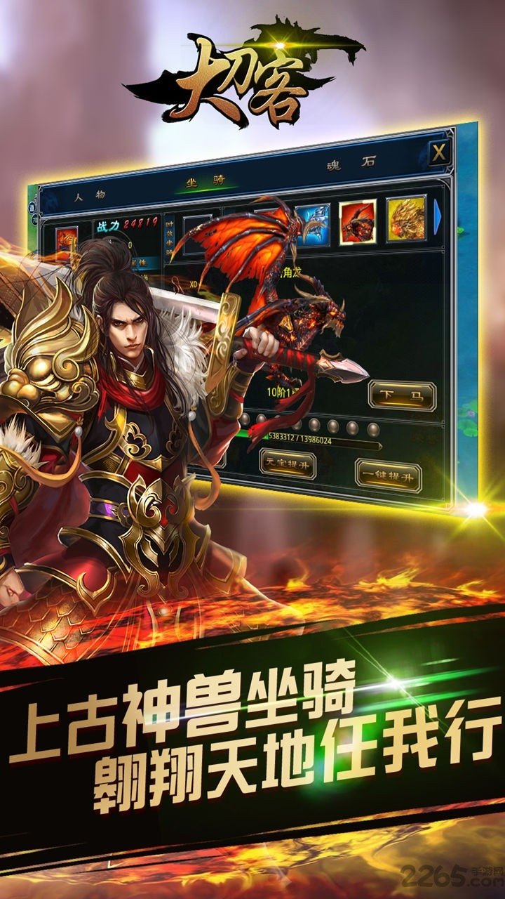 一人一刀战天下,豪杰齐聚决巅峰.《大刀客》是由天海网络独家代理的一款大型多端多人在线的角色扮演2.5D手游.游戏经典,耐玩与众不同,将刺激爽快的pk战斗与丰富多彩的系统设计结合,带给玩家前所未有的感受.雄伟大气美轮美奂的场景地图,帅气威武与众不同的人物设计,满屏秒杀的超强必杀技玩法,霸气华丽的酷炫神兽坐骑,激情无比万人同屏的攻城之战,带你领略不一样的热血新征途.