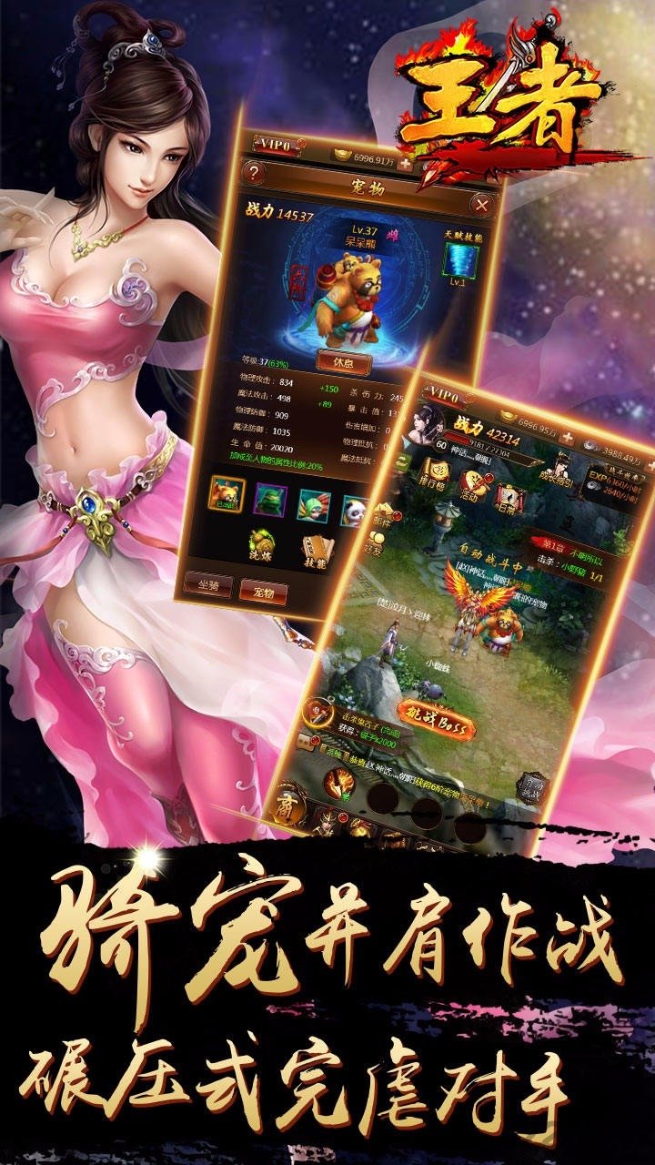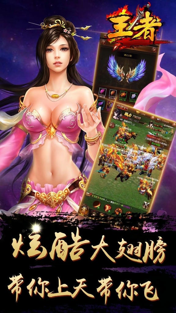 《王者》支持千人同屏、手动即时PK。炫酷的角色外观在酣畅淋漓的国战、押镖劫镖等玩法中获得极其刺激的体验!