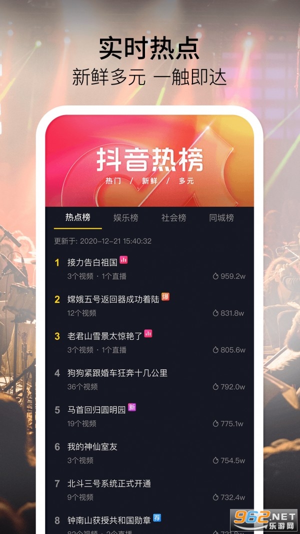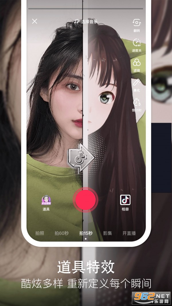 全球潮流音乐,搭配舞蹈、表演等内容形式,还有超多原创特效、滤镜、场景切换帮你一秒变大片,为你打造刷爆朋友圈的魔性短视频。
