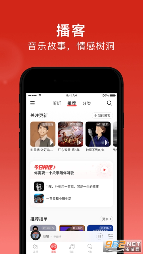 【精彩歌单】首创歌单作为核心架构,4亿歌单库,满足你跑步、学习、工作、聚会等各种场景听歌需求;