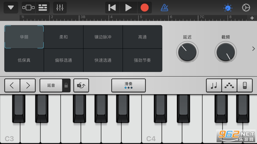 3、使用重混效果演奏出如滤音器和重复器的DJ风格效果;