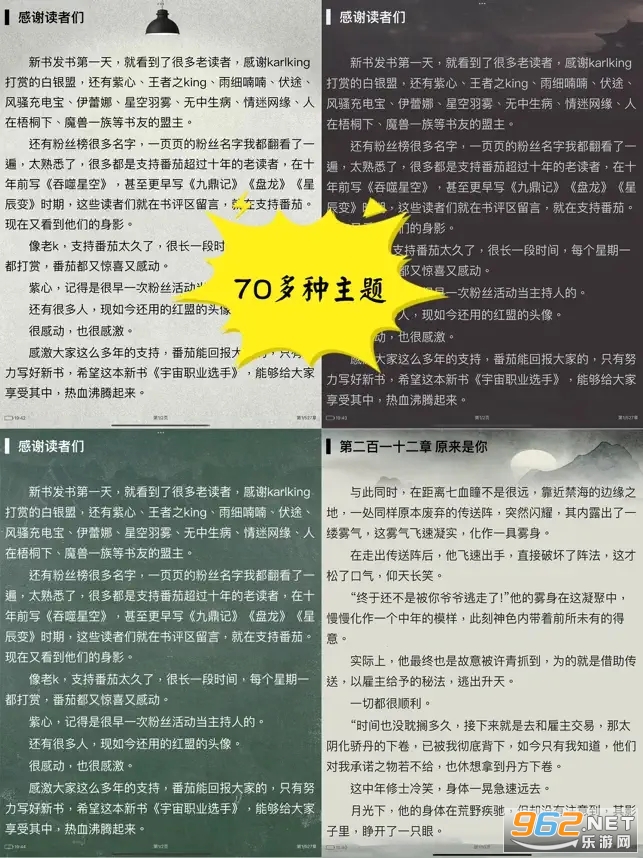 软件提供大量的阅读资源,可以满足不同用户的需求。通过定制主题和字体,以及夜间模式等功能,用户可以按照自己的喜好调整阅读界面,提高阅读舒适度。除了基本的阅读功能,该软件还提供一些附加功能,例如自动保存阅读进度,支持多种支付方式购买小说VIP章节等。