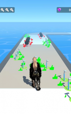 游戏中玩家将要不断的跑酷收集更多的金钱帮助自己成功完成减肥,但是会有对手抢你的物资你需要使用技巧感赢他们成功到达终点变成女王。