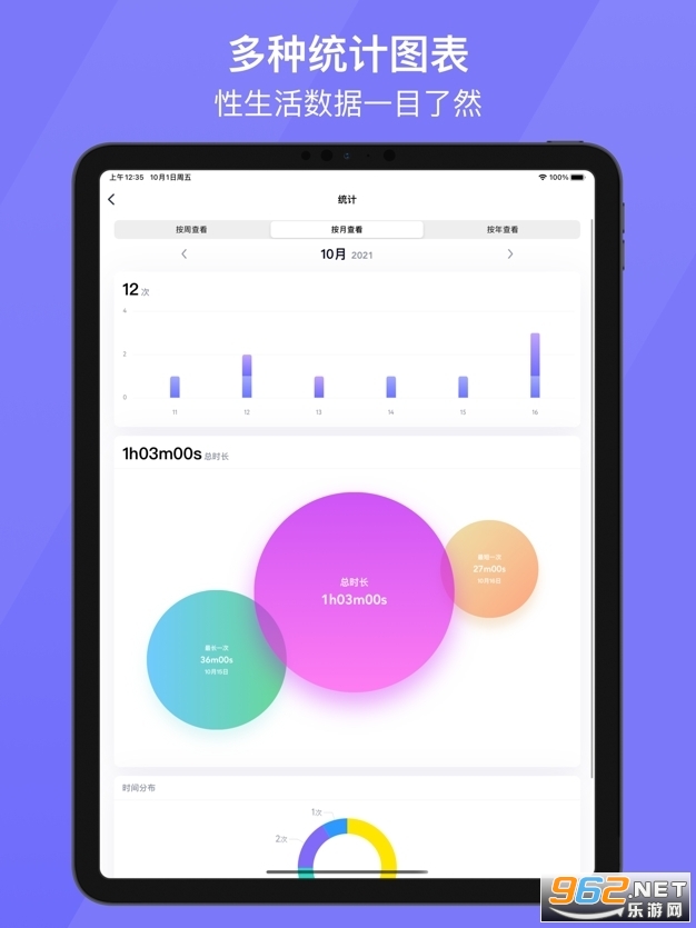 统计图表,可按周、月、年来查看所记录的性生活的相关数据;