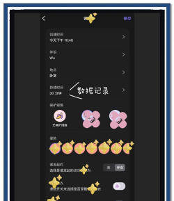 详尽的记录功能,可选伴侣、地点、是否使用保护措施、是否使用道具、持续时间、姿势、是否高潮、心情及对本次性生活的评分等等;