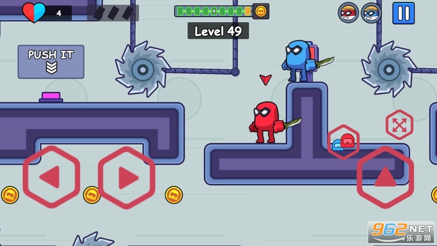 3、考验眼力以及手指的操作,两个角色的操作大大的增加了闯关的难度。