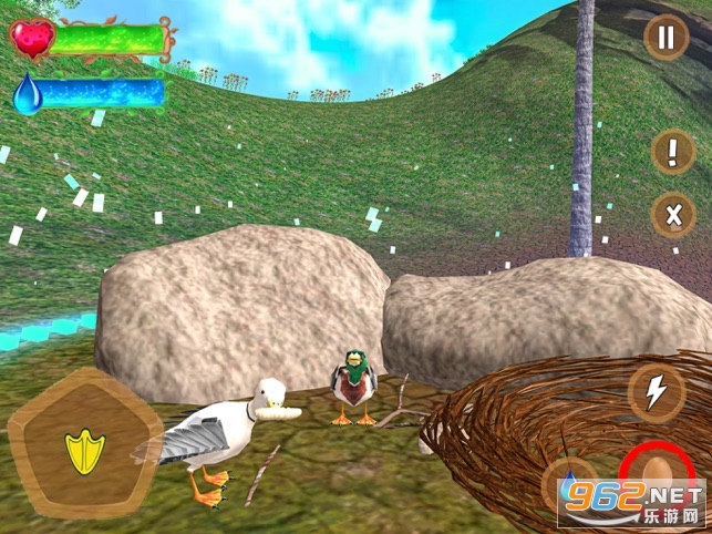 2、在大森林环境中扮演鸭子,找到鸭子伙伴并养大鸭子家族。