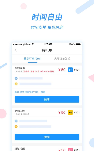 1、一键抢单:通过系统智能匹配或者项目主直接推送,骑手可以快速抢单,开发任务一键收入囊中;