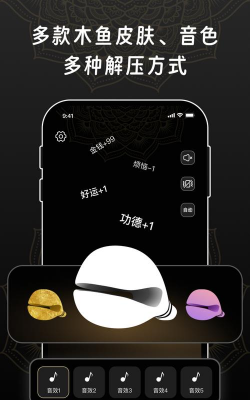 2.软件上为用户提供高达11种截然不同的木鱼音效,用户可以自由挑选进行体验。