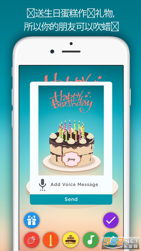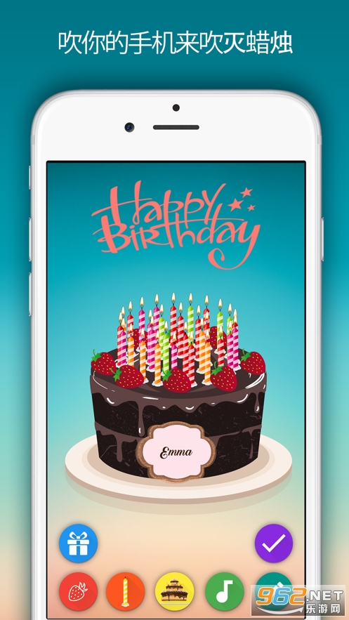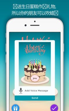 当对方打开电子生日卡片后,他会先听到你录制的语音信息,然后他需要像吹蜡烛一样吹一下屏幕,让他的 iPhone 侦测到吹气声,手机就会自动播放生日快乐歌和庆祝的特效啰!