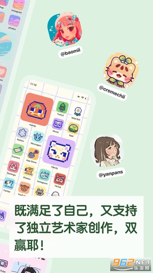 《Handy软件》是一款非常有创意的iOS主题图标包软件,画风看起来超级的小清新,里面拥有400多款独立艺术家创作的超美主题让大家来使用,包含壁纸,小组件等等,让你的手机看起来超有创意的,还可以自由创作,导入素材,使用自己创作的作品作为手机主题,感兴趣的话就来下载吧!