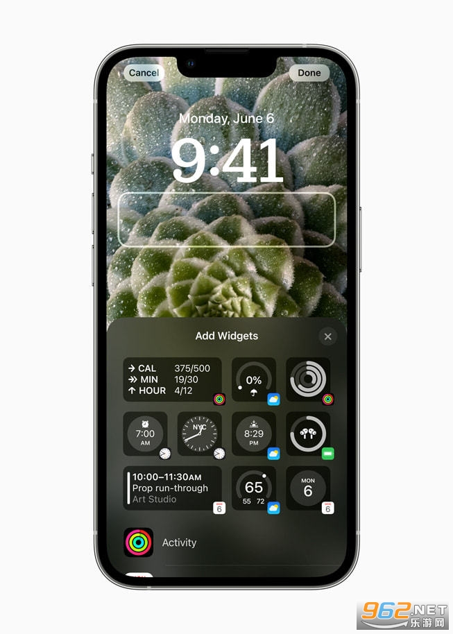 iOS 16系统中对iPhone的锁屏界面进行了有史以来最大改变。它加入了「小组件」功能,可以实现数以万计的应用功能直接控制,看起来与Apple Watch上的表盘设计逻辑很像。同时,锁屏壁纸支持用户个性化定制,拥有包括照片锁屏、天气预报锁屏、彩虹锁屏、天文锁屏等样式,其中时钟、字体、主题色、以及动画都会随之发生改变。