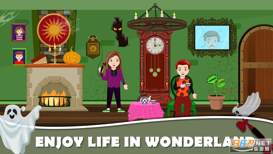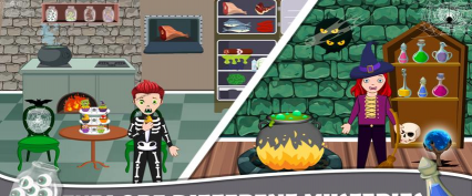 探索神奇的仙境小镇生活,在那里您可以创建自己的万圣节城市冒险神秘世界,并在假装游戏中播放您创建的故事。 多个独特的角色,如可怕的幽灵家族、万圣节城市等等,都准备好迎接新的探索神秘土地冒险生活。 探索恐怖的奶奶家族城堡生活,参观女巫巢穴,并在我的仙境小镇生活中的可怕玩具屋中发现隐藏的宝藏。