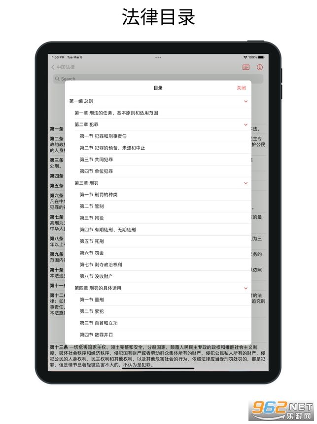 《中国法律快查手册app》是一款由Hui Liu自己制作的法律类的软件,可以轻松的查询各种法律目录相关的内容,没有任何的广告和内购,也不需要网络链接,让你能够查询最详细的法律目录。真正做到知法懂法吧!