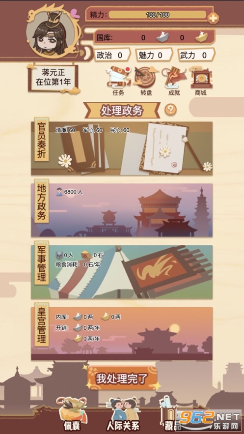 一款轻松有趣的休闲模拟游戏,在这款游戏中你将完成一系列有趣的挑战,还有着超多的玩法等待着你,你将成为皇帝来治理国家,让国家蒸蒸日上,游戏的操作简单容易上手,推荐给喜欢模拟游戏的玩家。