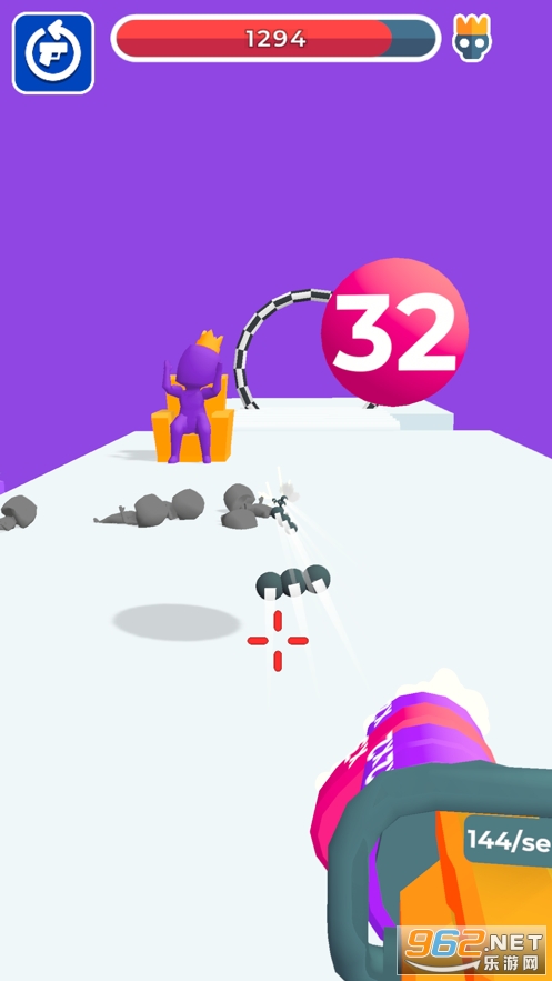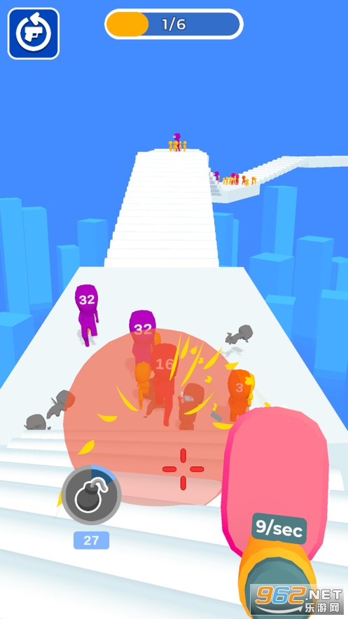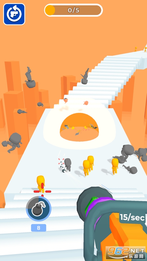 《裂杀大师游戏》是voodoo推出的一款射击打方块的休闲闯关手游,游戏中玩家将使用一把能够升级的武器去冒险,可以在武器前段放置数字方块,数字就代表你能够一次发射子弹的个数,注意会有着大量的小人向你涌来,玩家需要灵活的移动射击来消灭全部的敌人。
