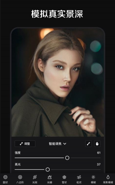 &8226; 智能景深:利用人工智能计算照片的景深,生成大光圈背景虚化效果,还可修改照片的景深焦点、光圈、镜头光学效果等