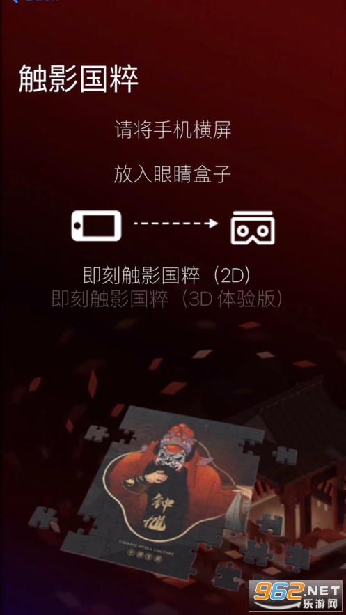 触影国粹是一款双目AR拼图游戏,同时提供多种国粹主题供用户选择。